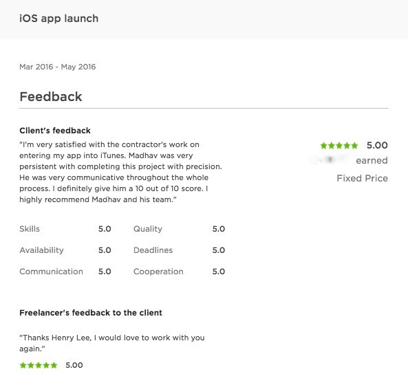 I'm very satisfied with the contractor's work on entering my app into iTunes. Madhav was very persistent with completing this project with precision. He was very communicative throughout the whole process. I definitely give him a 10 out of 10 score. I highly recommend Madhav and his team.
